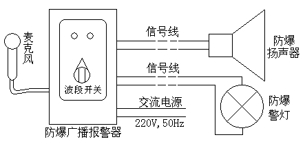 3.該防爆廣播報(bào)警系統(tǒng)也可同各類火災(zāi)報(bào)警控制器或其它控制器配合使用,火災(zāi)報(bào)警控制器送來(lái)的開(kāi)關(guān)控制信號(hào)也可啟動(dòng)報(bào)警電路,由防爆揚(yáng)聲器發(fā)出警報(bào)聲,由防爆警燈發(fā)出閃爍的紅色燈光。也可同手動(dòng)報(bào)警按鈕配合使用,構(gòu)成簡(jiǎn)單的防爆報(bào)警系統(tǒng)。